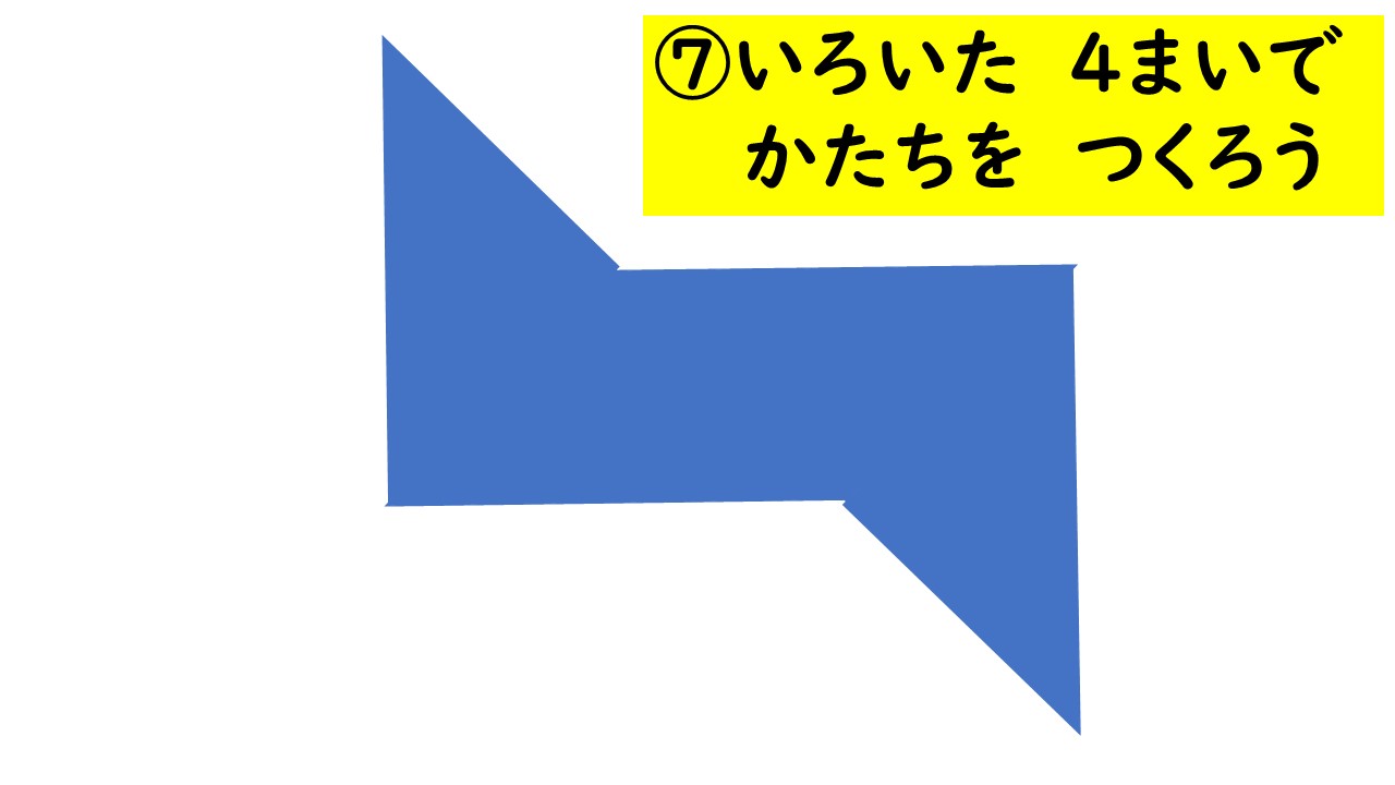 いろいたを4枚使って、たくさんの形を作らせました。子ども達は形を作りながら、並べ方を工夫し、理解していきます。2学期、3学期の参観日にもおすすめの授業です。